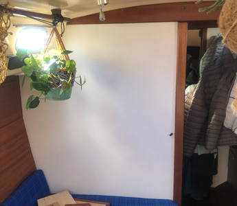 Da man unserem Holzboden die letzten Jahrzehnte deutlich ansehen konnte, wollten wir diesen vom alten Lack befreien und ölen. Außerdem strichen wir einige unserer Wände weiß, um den Innenraum etwas heller und freundlicher zu machen. Auch wenn der Innenausbau alter Boote noch qualitativ viel hochwertiger ist als der neuerer Yachten, kann dieser durch das meist sehr dunkle Holz recht bedrückend wirken. Nachdem wir ein paar Wände heller gestrichen hatten, bekam der Salon einen ganz anderen Charakter.